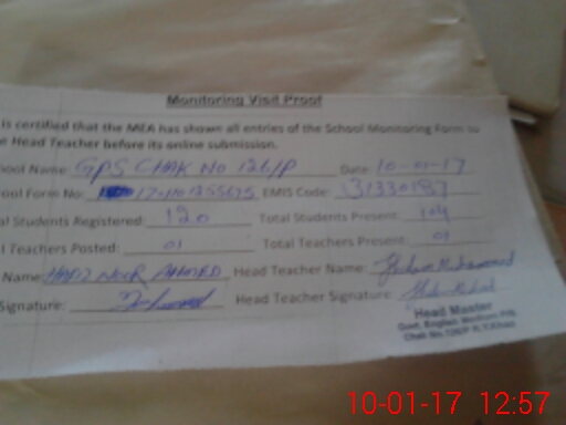 | EMIS Code: 31330186 | Name of School: GPS CHAK NO. 126/P | |||