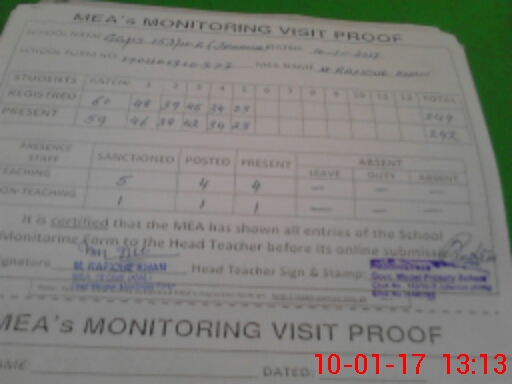 | Attendance Register | Head Teacher | MEA with School | Visit Proof |