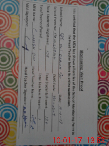 | Certified that this School was Inspected by the Undersigned MEA/DMO Today and the Information Stated Above is as Per Record. | |||||