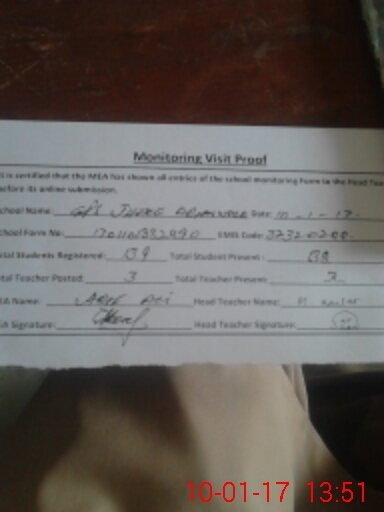 | Attendance Register | Head Teacher | MEA with School | Visit Proof |