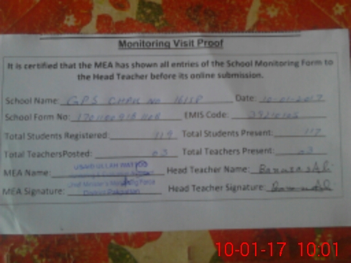 | Certified that this School was Inspected by the Undersigned MEA/DMO Today and the Information Stated Above is as Per Record. | |||||