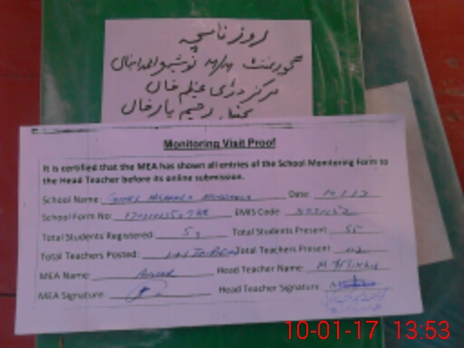 | Attendance Register | Head Teacher | MEA with School | Visit Proof |
