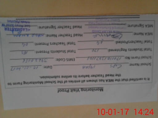 | Attendance Register | Head Teacher | MEA with School | Visit Proof |