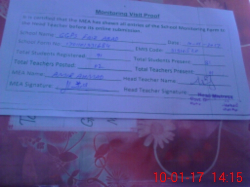 | EMIS Code: 31310520 | Name of School: GGPS FIAZ ABAD | |||