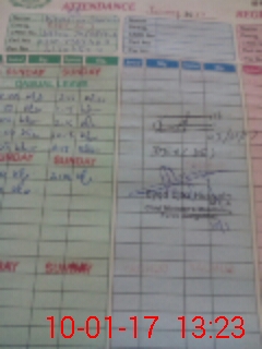 | CNIC | Full Name | Designation | R/C | Absence During Last Calender Month |