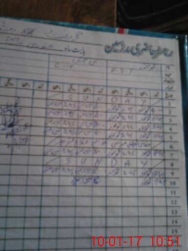 | CNIC | Full Name | Designation | R/C | Absence During Last Calender Month |