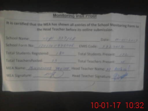 | Certified that this School was Inspected by the Undersigned MEA/DMO Today and the Information Stated Above is as Per Record. | |||||