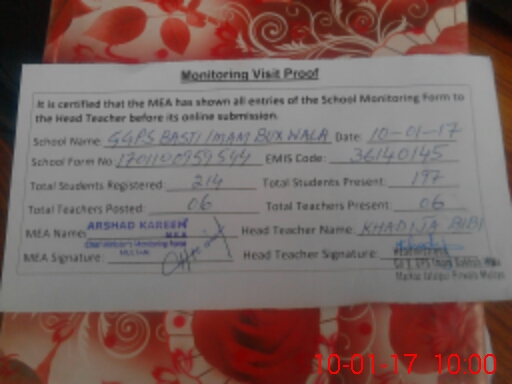 | EMIS Code: 36140145 | Name of School: GGPS BASTI IMAM BUX WALA | |||