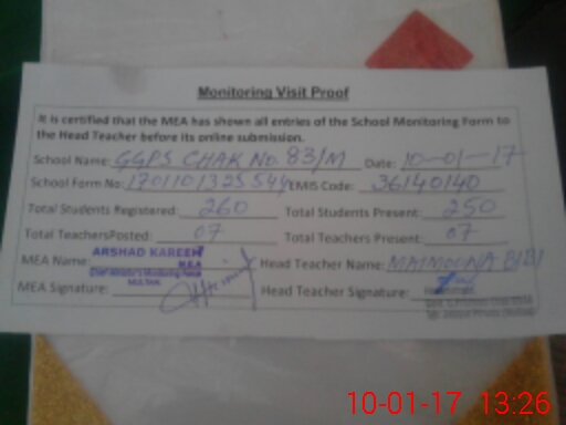 | EMIS Code: 36140140 | Name of School: GGPS CHAK NO. 83/M | |||