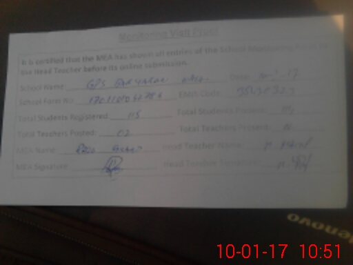 | Certified that this School was Inspected by the Undersigned MEA/DMO Today and the Information Stated Above is as Per Record. | |||||