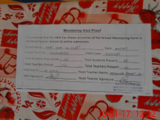 | Attendance Register | Head Teacher | MEA with School | Visit Proof |
