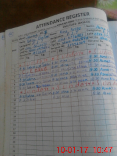 | CNIC | Full Name | Designation | R/C | Absence During Last Calender Month |
