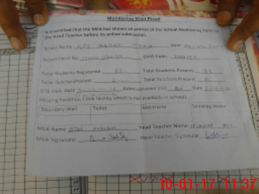 | Attendance Register | Head Teacher | MEA with School | Visit Proof |