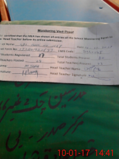 | Attendance Register | Head Teacher | MEA with School | Visit Proof |