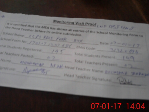 | Certified that this School was Inspected by the Undersigned MEA/DMO Today and the Information Stated Above is as Per Record. | |||||
