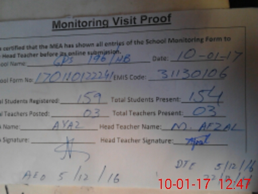 | EMIS Code: 31130106 | Name of School: GPS CHAK 196/HB | |||