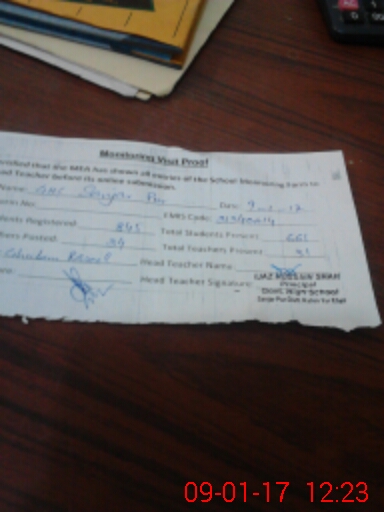 | Attendance Register | Head Teacher | MEA with School | Visit Proof |