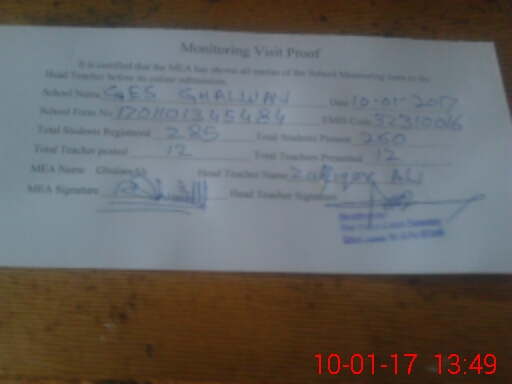| EMIS Code: 32310016 | Name of School: GHS GHALWAN | |||
