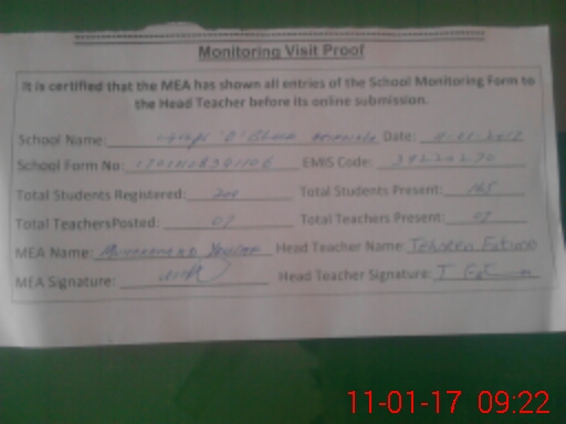 | EMIS Code: 39220270 | Name of School: GGPS SHARIF MOHALLA O-BLOCK | |||