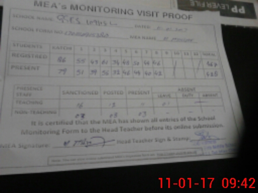 | Attendance Register | Head Teacher | MEA with School | Visit Proof |