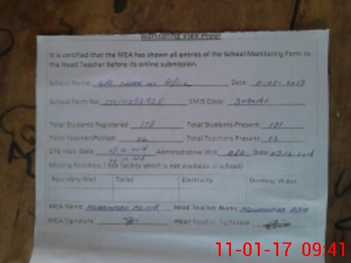 | Certified that this School was Inspected by the Undersigned MEA/DMO Today and the Information Stated Above is as Per Record. | |||||