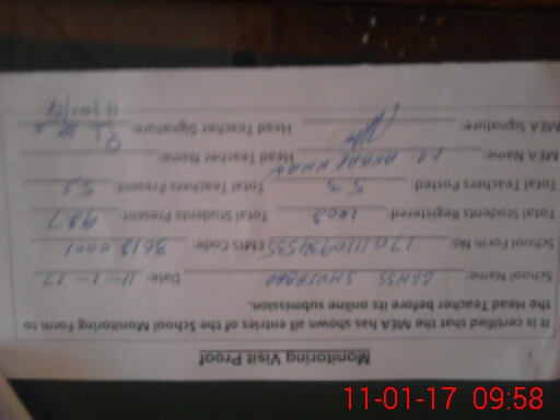 | Certified that this School was Inspected by the Undersigned MEA/DMO Today and the Information Stated Above is as Per Record. | |||||