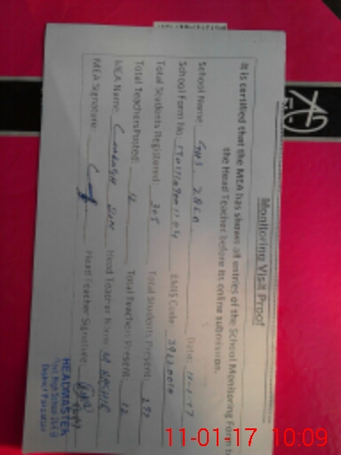 | Attendance Register | Head Teacher | MEA with School | Visit Proof |