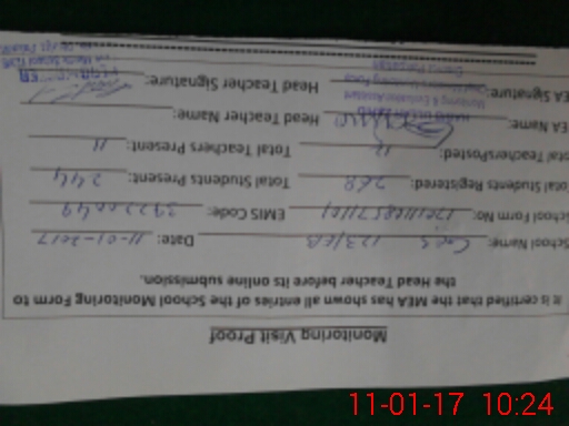 | Attendance Register | Head Teacher | MEA with School | Visit Proof |