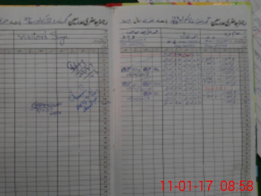 | School Visited by School Health & Nutrition Supervisor (No. of Visits) | Name1: | KHALID YASEEN | Name2: | ||