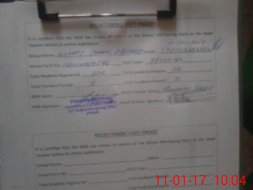| Name: MA**** NA**** Designation: (School Headmaster's/Headmistress's) H M Phone/Cell Number: 03**** |