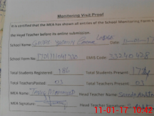| EMIS Code: 33240428 | Name of School: GMPS YASMIN CANAL LODGE | |||