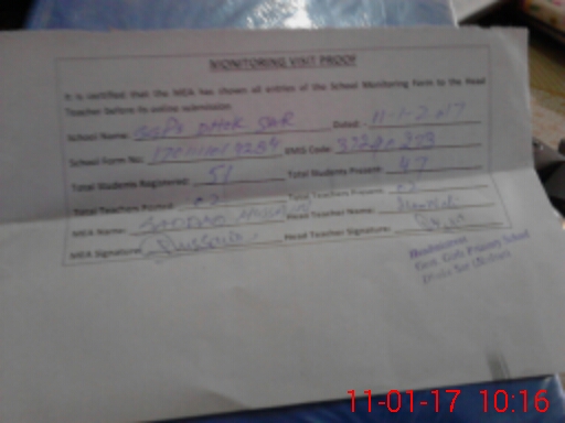 | Attendance Register | Head Teacher | MEA with School | Visit Proof |