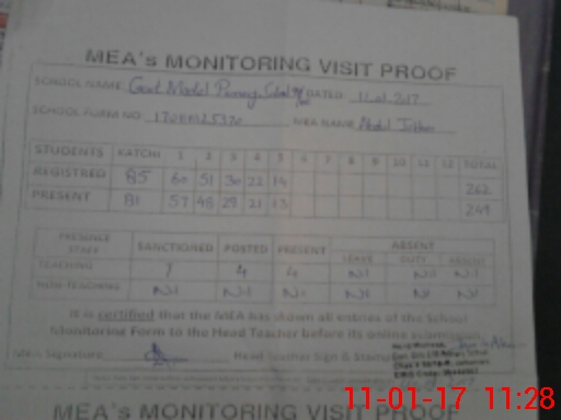 | Attendance Register | Head Teacher | MEA with School | Visit Proof |