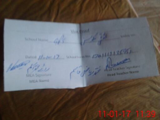| Attendance Register | Head Teacher | MEA with School | Visit Proof |