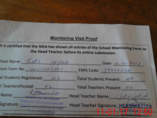 | Attendance Register | Head Teacher | MEA with School | Visit Proof |