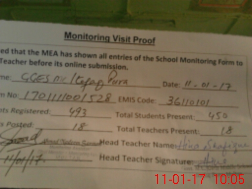 | EMIS Code: 36110101 | Name of School: GGES MC ITTEFAQ PURA MULTAN | |||