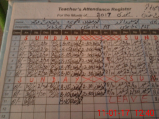 | CNIC | Full Name | Designation | R/C | Absence During Last Calender Month |