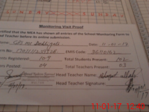 | Attendance Register | Head Teacher | MEA with School | Visit Proof |