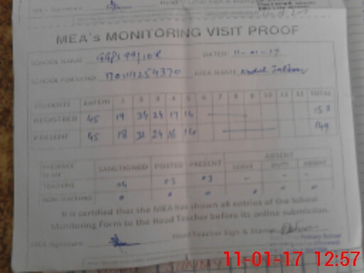 | Attendance Register | Head Teacher | MEA with School | Visit Proof |