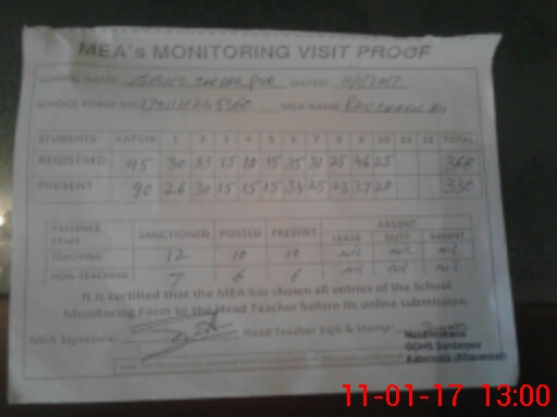 | Attendance Register | Head Teacher | MEA with School | Visit Proof |