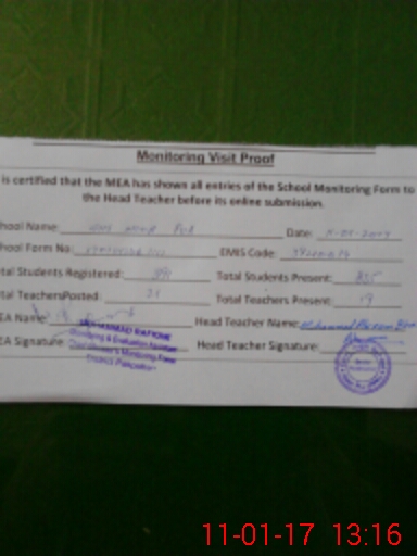 | Certified that this School was Inspected by the Undersigned MEA/DMO Today and the Information Stated Above is as Per Record. | |||||