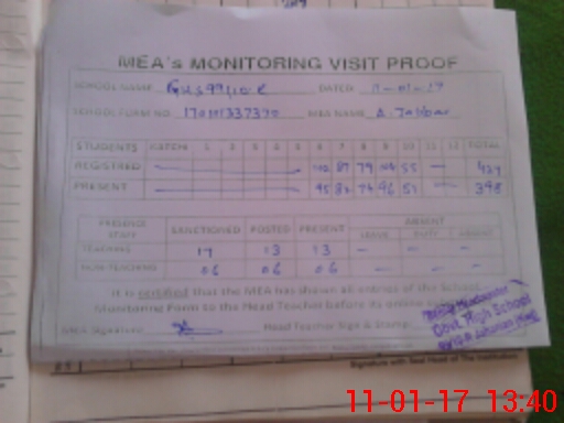 | Attendance Register | Head Teacher | MEA with School | Visit Proof |
