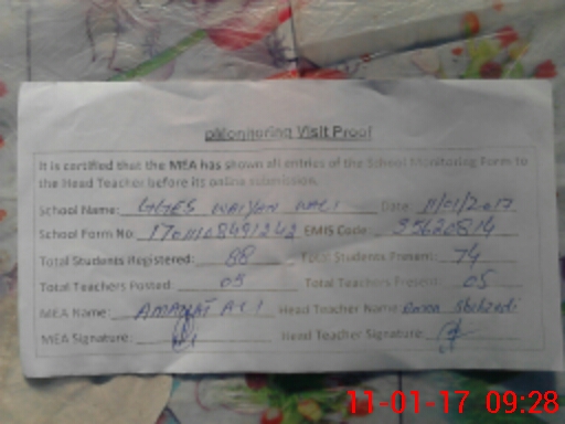 | Attendance Register | Head Teacher | MEA with School | Visit Proof |