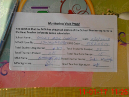 | Attendance Register | Head Teacher | MEA with School | Visit Proof |