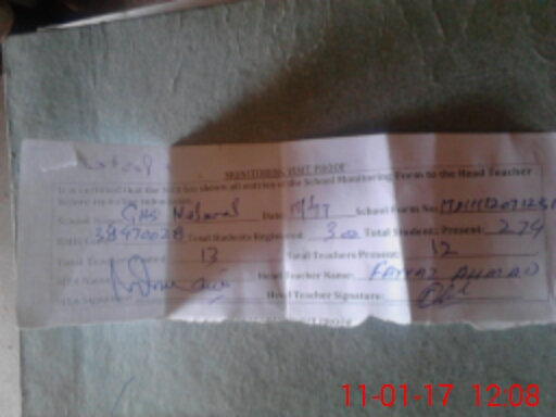 | Attendance Register | Head Teacher | MEA with School | Visit Proof |