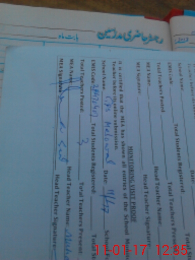 | Attendance Register | Head Teacher | MEA with School | Visit Proof |