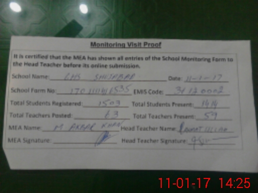 | EMIS Code: 36120002 | Name of School: GHS SHUJABAD | |||
