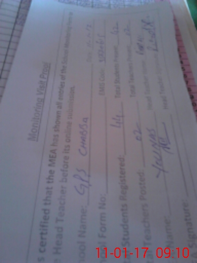 | Attendance Register | Head Teacher | MEA with School | Visit Proof |