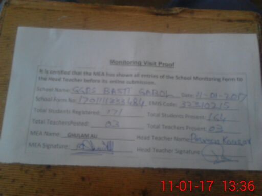 | EMIS Code: 32310215 | Name of School: GGPS BASTI GABOOL | |||