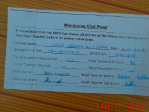 | EMIS Code: 31320728 | Name of School: GGPS ABBAS ALI SHAH | |||